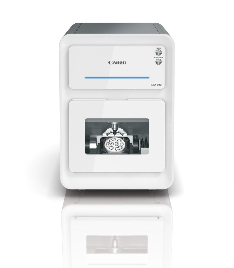 「歯科用ミリングマシンMD-500S」は工業製品で培った高い技術を応用し、キャリブレーション不要で高精度な加工を実現した乾式の5軸制御ミリングマシンです。C型クランプを採用したことで、前歯部のアンダーカットや歯間も直接加工ができます。