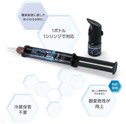 松風の推奨する審美修復用接着システム「ビューティボンドXtreme」と「レジセムEX」は、セラミックス・ジルコニアやCAD/CAM冠材料を含むあらゆる材質(松風PEEKを除く)に対して接着を可能とします。 前処理は「ビューティボンドXtreme」を使用することで、ワンボトルで完結。 接着性レジンセメント「レジセムEX」は既存製品の「レジセム」をリニューアルしており、好評であったクリア色の透明性やオペーク色の金属色遮蔽性、操作性はそのまま継承、さらに硬化性や着色・変色耐性向上による口腔内環境下での色調安定化を実現しております。 両製品とも1℃~25℃の温度で保管でき、チェアサイドでの管理が可能となりました。 デンタルショー当日も展示しておりますので、松風ブースへお越しいただき是非お手に取ってお試しください!