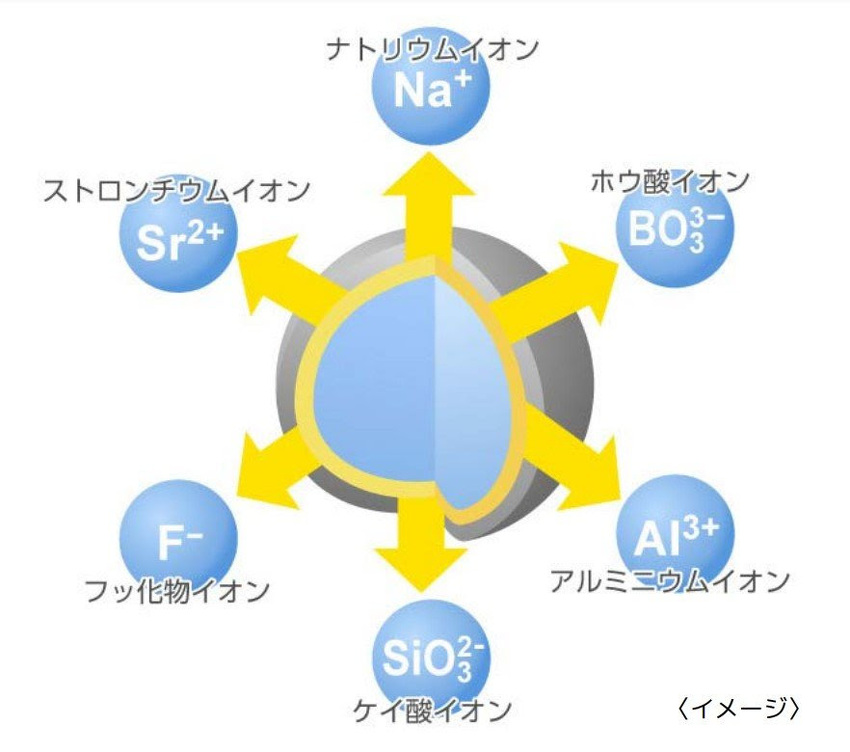 Giomerとは、S-PRGフィラーを配合した松風の歯科材料の総称です。 S-PRGフィラーは、松風独自のPRG技術(特許取得)により開発され、 6種のイオン=“マルチイオン”をリリース&リチャージすることが最大の特長です。 マルチイオンの特長としては、大きく分けて以下の3つがあります。