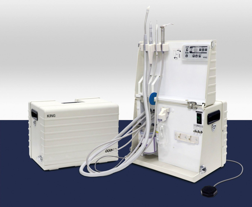 ・業界最軽量 8.3㎏ ・標準装備 <バキューム、ブラシレスモーター、超音波スケーラー、3ウェイシリンジ>を搭載。 吸引力 約75%アップのバキューム搭載。(弊社同クラス機種比。100V使用時) LEDライト付き超音波スケーラーを標準装備。簡単に出力調整を行うことができます。 ユニットと同様の3ウェイシリンジが標準搭載されています。 柔軟性の高いマイクロモーターを装備。ISO 3964基準のカプリングを装備しておりますので、お手持ちのハンドピースをご使用いただけます。 ・すぐに使えて片付け簡単 取り外し式のインスツルメントハンガーで収納性が向上しました。 インスツルメントハンガーの設置、フットペダルの装着のみであるため、スムーズに展開することが可能です。 ・コードレス(オプション) バッテリー仕様でコードレスに対応できます。