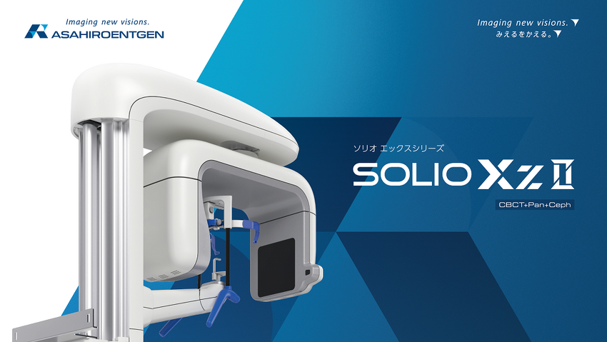 アーム型X線CT診断装置SOLIO XZII ノイズ低減・高速動作・微細化を可能にした半導体技術IGZOを採用した新型センサーを搭載し、パノラマ・CT画像が更にクリアになりました。 診断に迷いを生じさせないピクセルサイズ98㎛のクリアなパノラマ画像と、360度フルスキャンによるボクセルサイズ100㎛のシャープで高精細なCT画像を提供します。