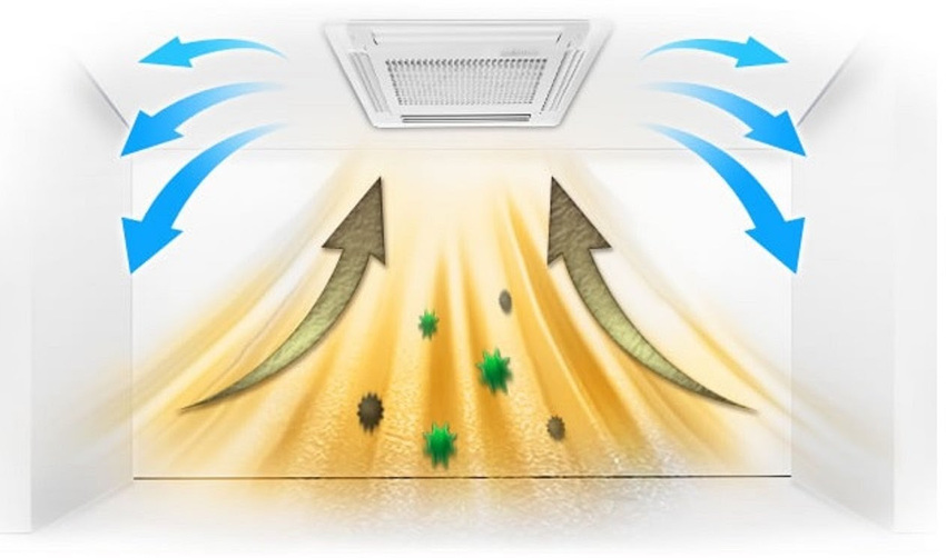 クリアテック空気清浄システムの特徴は、なによりその優れた高性能機能にあります。 室内すべての空気を短時間で取り込むことが可能なので、カビ菌・ウィルス・粉塵や臭いなどを強力に殺菌・除去し、キレイになった空気を室内全体にいきわたらせることができます。 また、強力な集塵力には欠かせない、完璧なメンテナンスサービスを提供することで、クリーンな空気環境を保ち続けます。