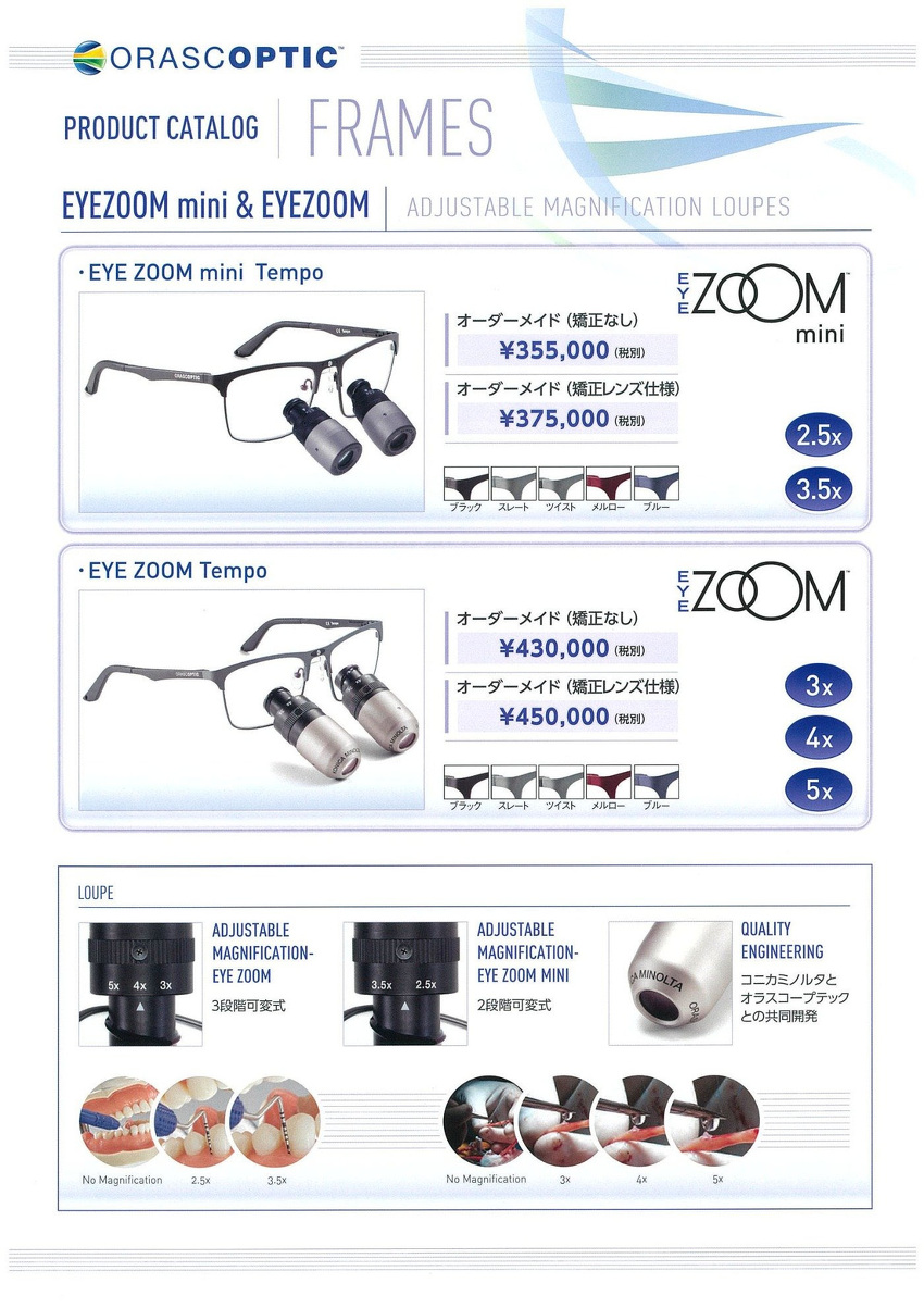 フルオーダーメイドで埋め込みタイプのサージカルルーペです。 重心バランスがよく、使用感が軽いです。 また、オラスコープでは世界初、倍率が変換できる 【アイズーム】を展示しております